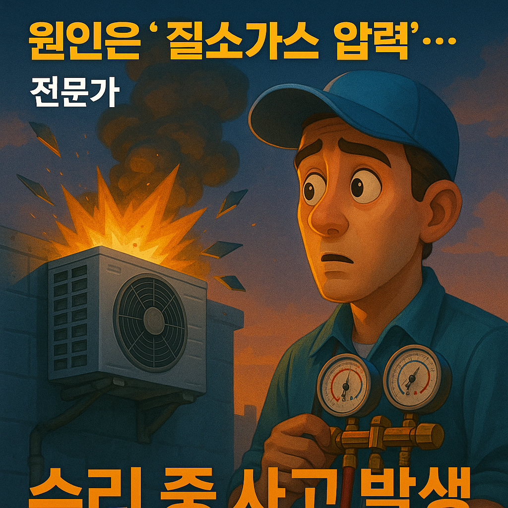 이 과정에서 점검용 질소가스를 과도하게 주입했고, 압력이 견디지 못한 실외기가 결국 폭발한 것으로 보입니다.