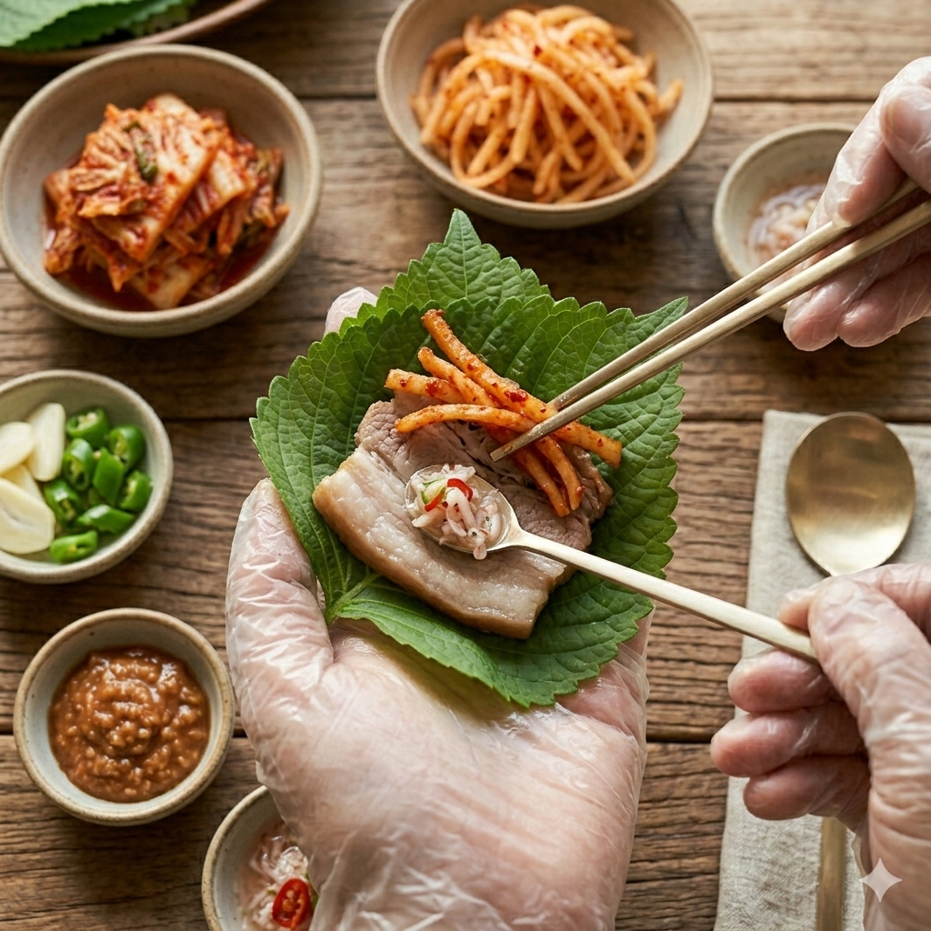 * 보쌈김치와 무말랭이: 매콤 달콤한 양념이 고기의 기름진 맛을 잡아줍니다.