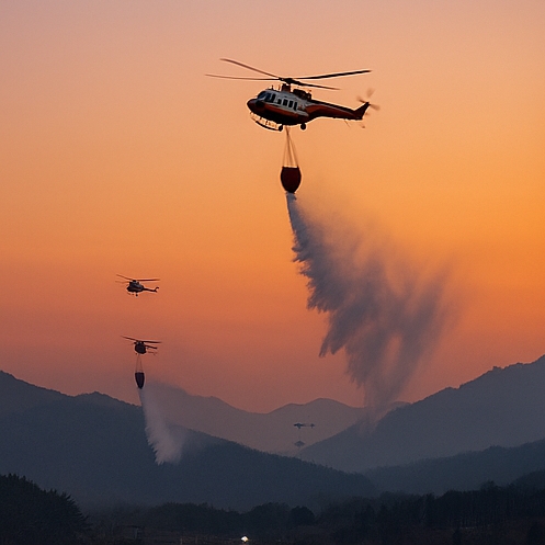 ■ 4. 일출 후 본격 진화: 헬기 29대 투입으로 17시간 만에 주불 진화