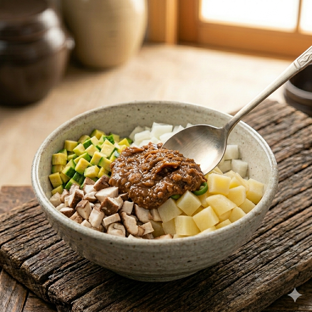 * 쌀뜨물의 사용: 쌀뜨물의 전분 성분은 된장의 강한 맛을 부드럽게 감싸주고, 국물에 적당한 농도를 부여합니다.