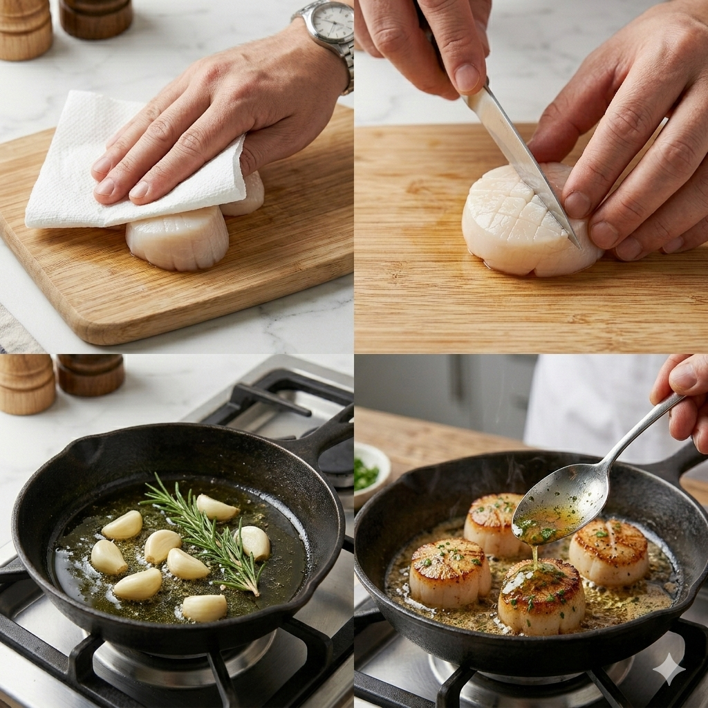 4. 셰프의 킥: 관자 버터구이 조리 과정 (Step-by-Step)