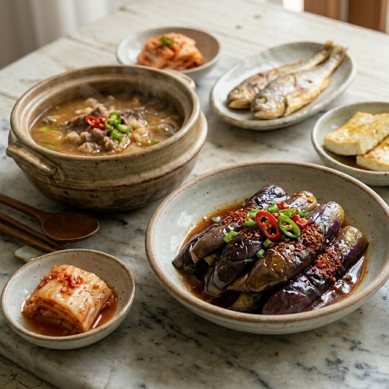 가지찜은 그 자체로 훌륭한 반찬이지만, 다음과 같은 음식들과 곁들이면 훨씬 풍성한 식탁이 됩니다.