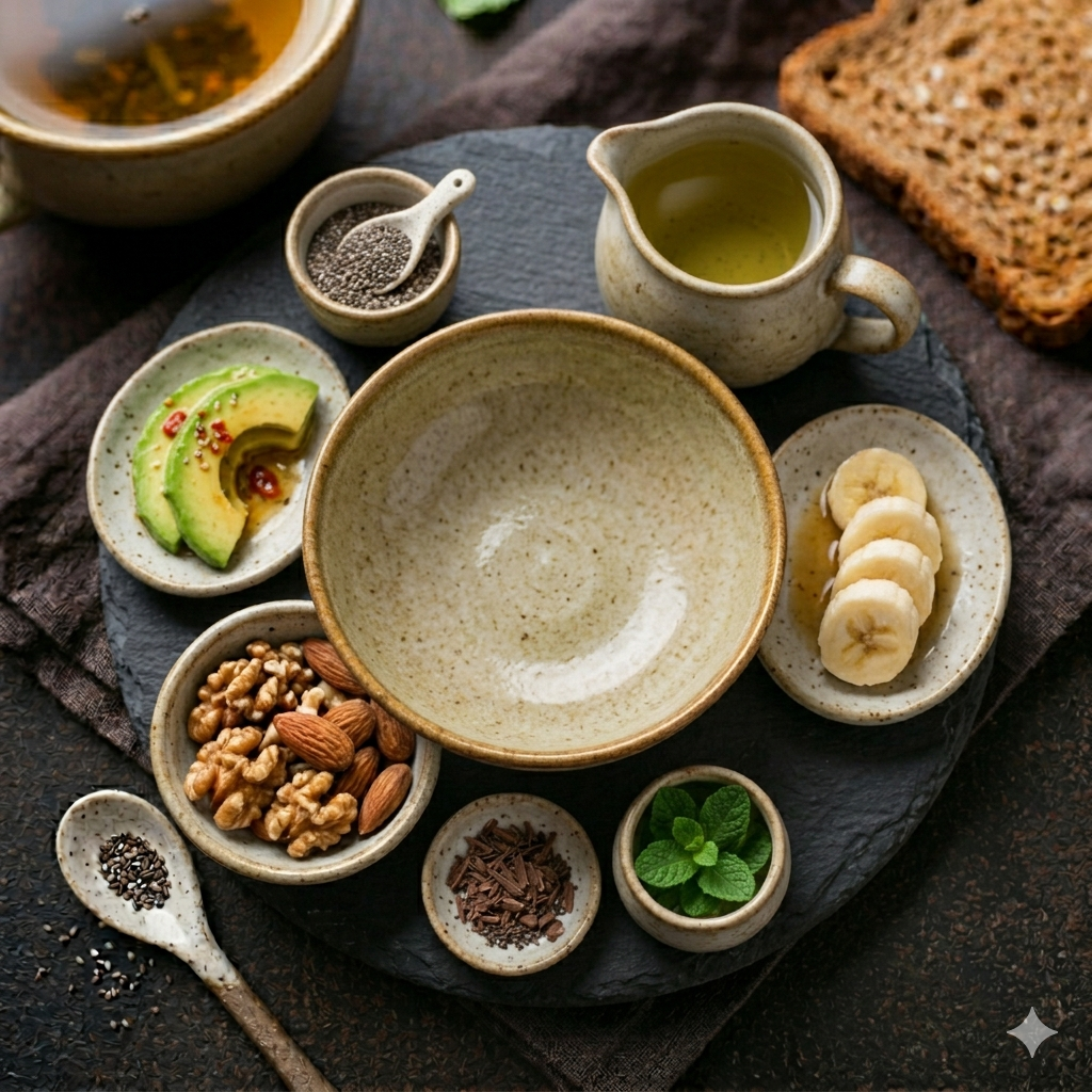 * 통곡물 토스트: 복합 탄수화물이 트립토판의 뇌 흡수를 도와 숙면 시너지를 냅니다.