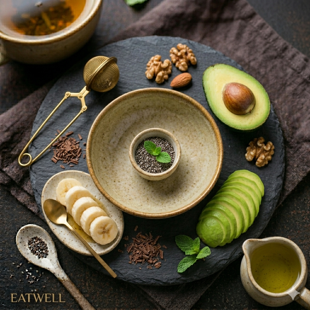* 따뜻한 카모마일 차: 테아닌 성분이 아보카도의 마그네슘과 만나 진정 효과를 극대화합니다.