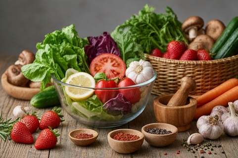 레몬즙, 식초(발사믹, 사과, 현미 식초 등), 와인 등 산미가 있는 재료는 요리의 맛을 상큼하게 돋우고, 식욕을 증진시킵니다. 또한, 들기름, 참기름, 견과류, 씨앗류 등 고소한 맛을 내는 재료들은 요리에 깊이와 풍부함을 더하여 저염식의 맛을 한층 업그레이드합니다.