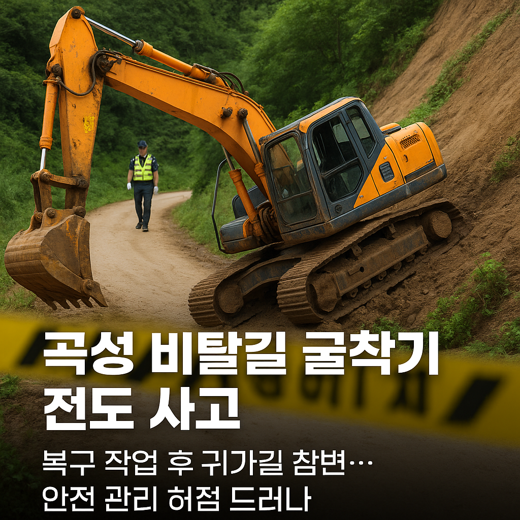 2025년 8월 12일 오후 3시 35분경, 전라남도 곡성군 겸면의 한 비탈길에서 굴착기가 전도되는 심각한 사고가 발생했습니다.