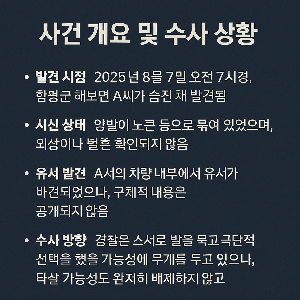 📝 유서 여부: 차량 내부에서 발견, 내용은 미공개