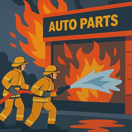 자동차용품점 같은 점포 화재에는 공통된 위험 요소가 있습니다.