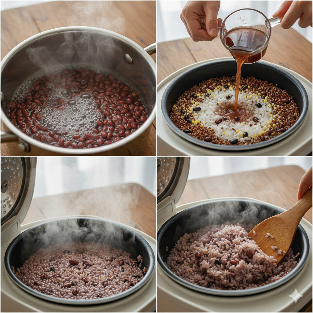 STEP 1: 곡물 불리기와 팥 삶기 (전문가 비법)