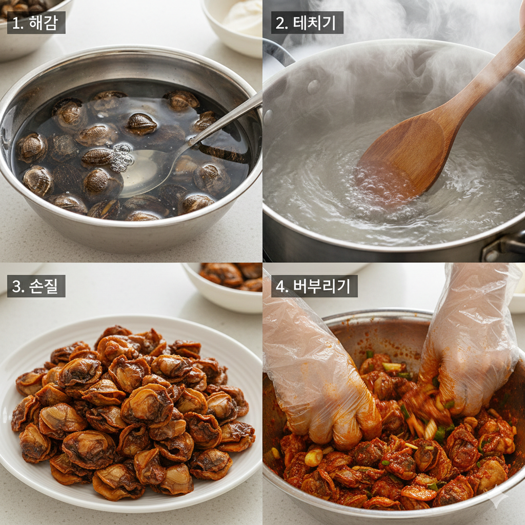 꼬막 요리의 핵심은 이물질 제거입니다. 뻘을 제대로 제거하지 않으면 식감을 망칠 수 있으니 주의하세요.