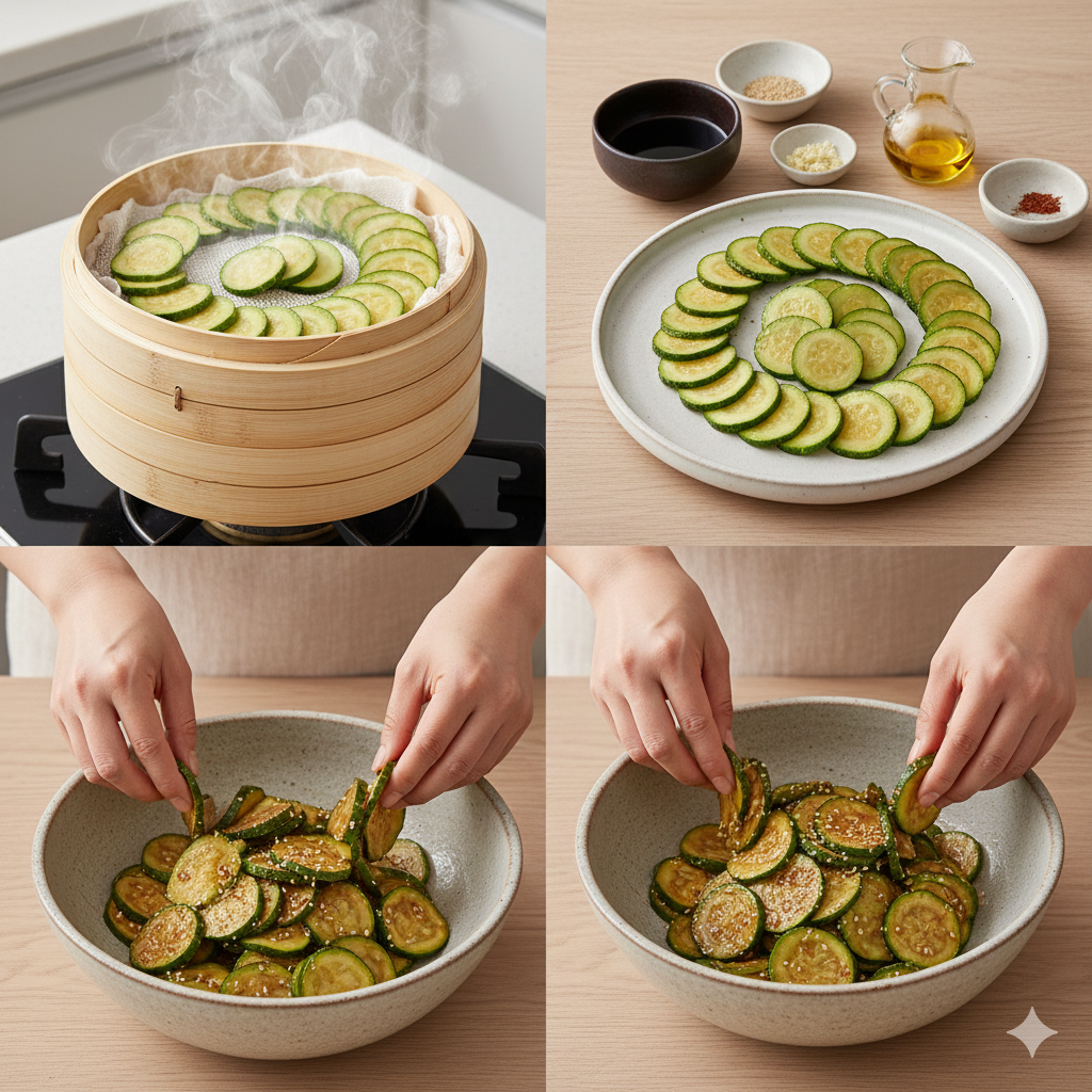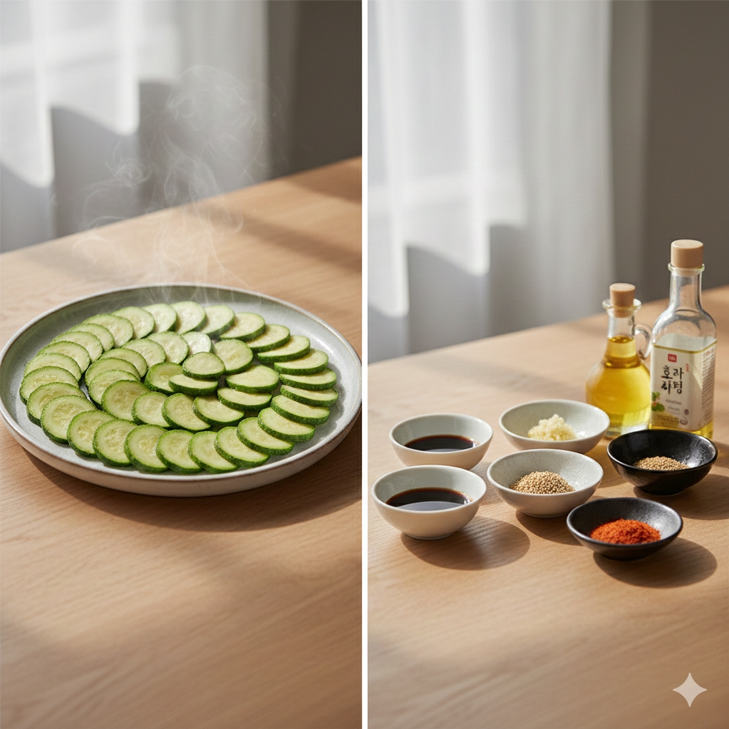 기름진 음식이 부담스럽거나 애호박 본연의 맛을 더욱 깔끔하게 즐기고 싶다면, 쪄서 무치는 방식이 정답입니다.