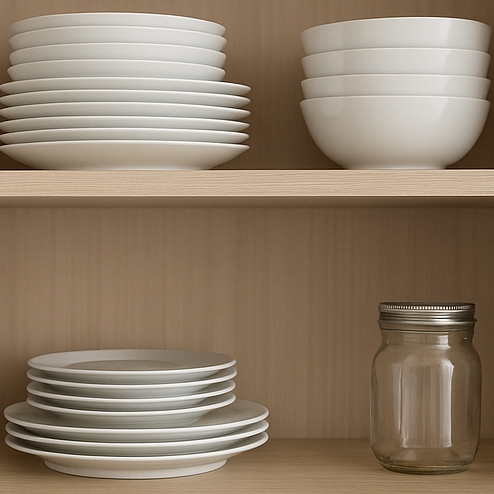 접시가 쌓여 무겁고 꺼내기 힘들다면, 이는 수납 구조가 동선과 맞지 않음을 의미합니다.