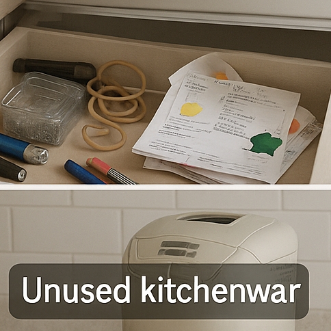 : 다기능 조리도구 중심으로 정리하고, 한동안 쓰지 않은 도구는 기증하거나 처분하세요. 주방이 숨 쉴 공간을 되찾습니다.