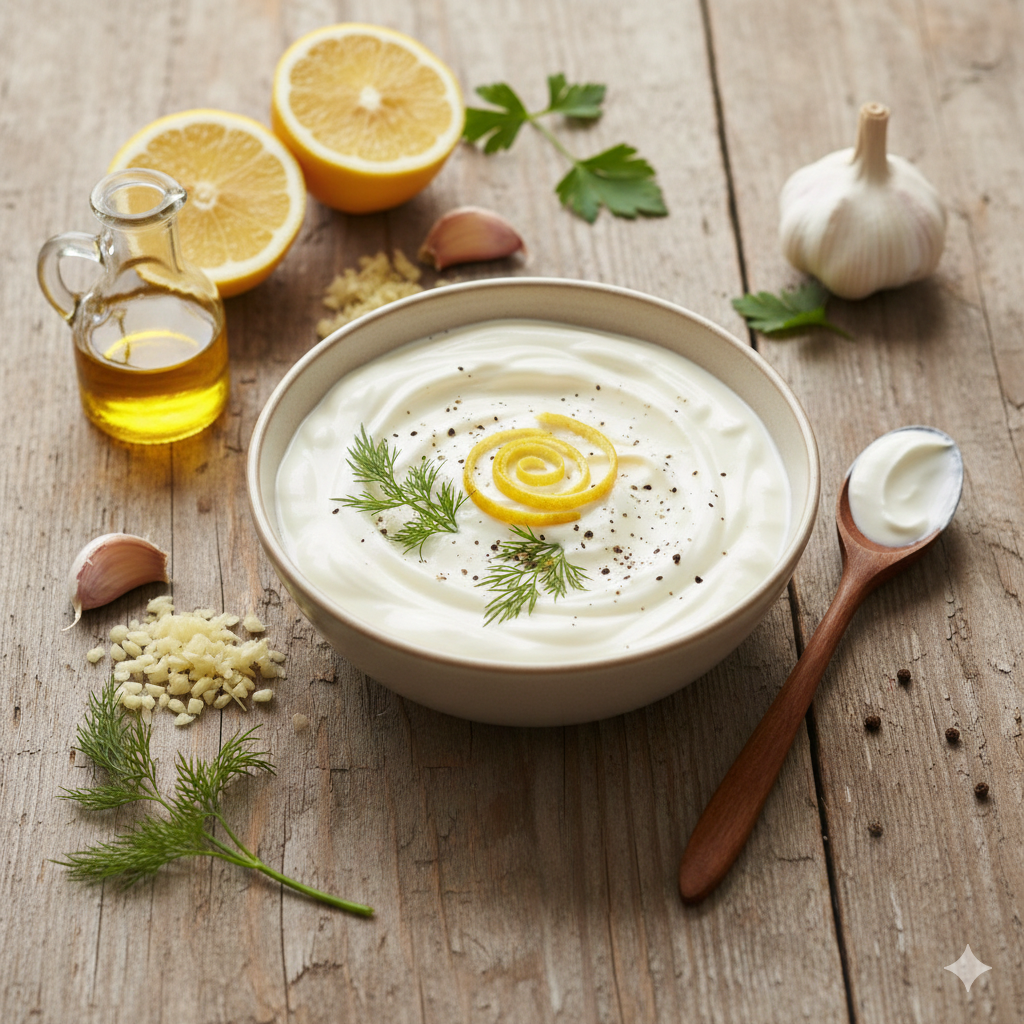 지중해의 건강을 담은 '갈릭 레몬 그릭 요거트 소스' 만들기: 만능 딥소스 레시피