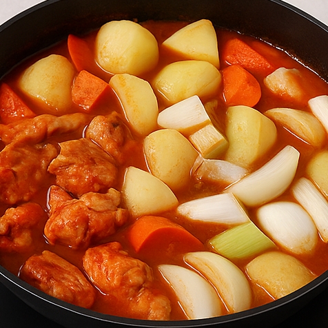 🥔 5. 채소 넣고 졸이기 — 국물의 깊이 완성