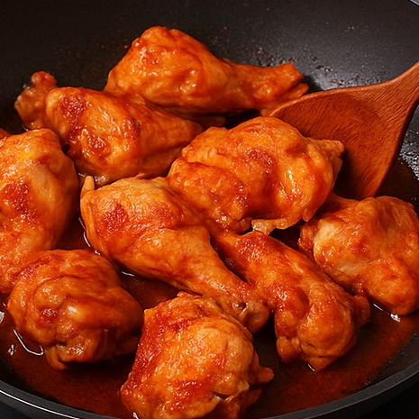 닭 표면이 붉게 변하며 양념이 스며들면,