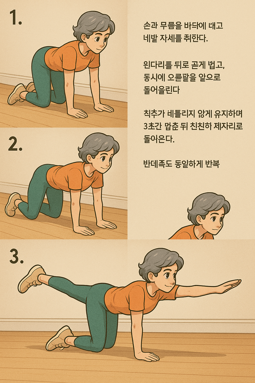 - 버드독 → 코어 안정 및 척추 교정