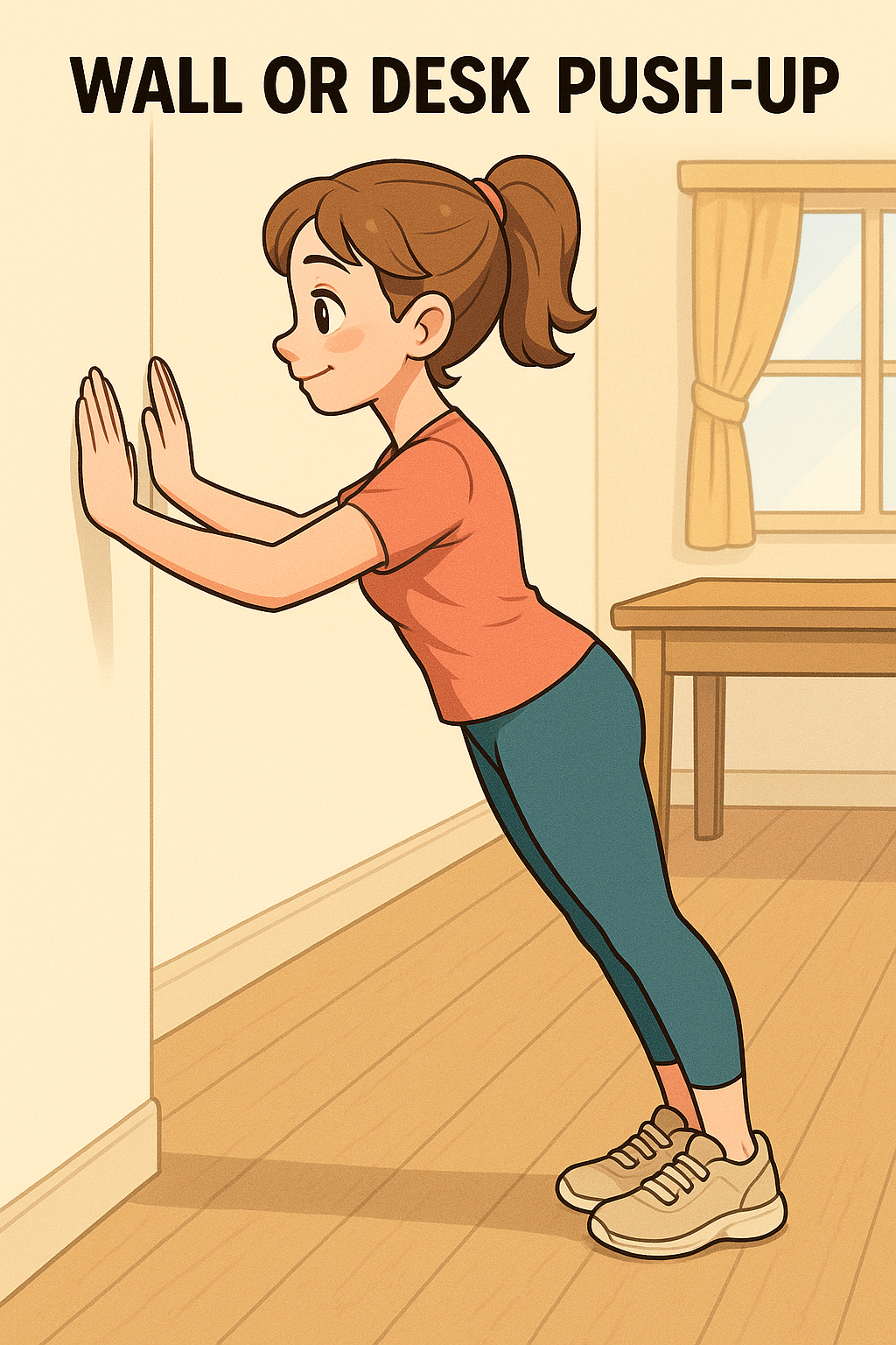 🧱 1️⃣ 벽이나 책상 짚고 푸시업 (Wall or Desk Push-up)