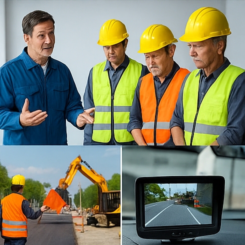 후진 시 반드시 신호수가 배치되며, 위반 시 강력한 벌금과 행정 제재가 가해집니다.
