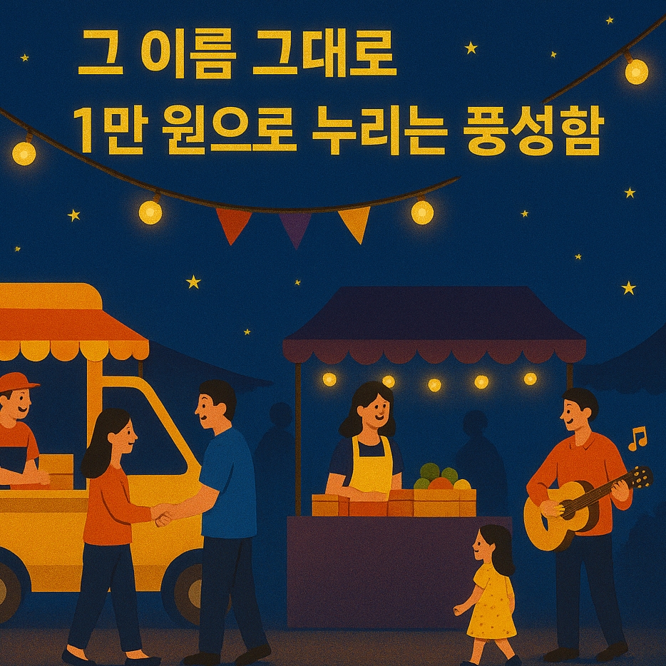‘육거리야시장 만원’이라는 이름으로 열리는 이 특별 야간행사는 단돈 1만 원으로 즐길 수 있는 가성비 먹거리부터 캠핑 감성 가득한 공간, 그리고 다양한 공연과 체험 콘텐츠로 가족 단위 방문객부터 청년층까지 모두의 발길을 사로잡고 있습니다.