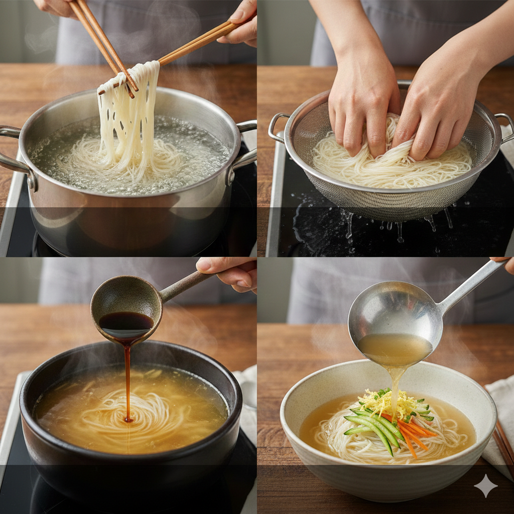 * 면의 온도: 면이 너무 차가우면 국물이 금방 식으므로, 면을 육수에 살짝 적셔내는 '토렴' 과정을 거치면 훨씬 맛있습니다.