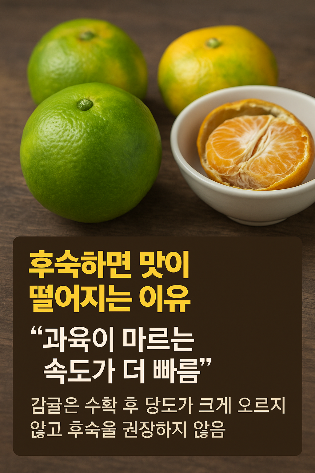 ➡ 결과적으로 우리가 마트에서 보는 초록 귤은 덜 익은 귤이 아니라, 법적 기준을 충족한 정상적인 완숙 귤이다.