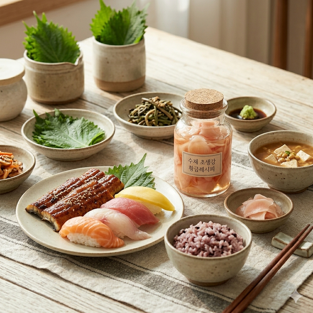 특히 식초의 유기산과 결합한 초생강은 단백질 분해를 도와 육류나 생선 요리와 궁합이 환상적입니다.