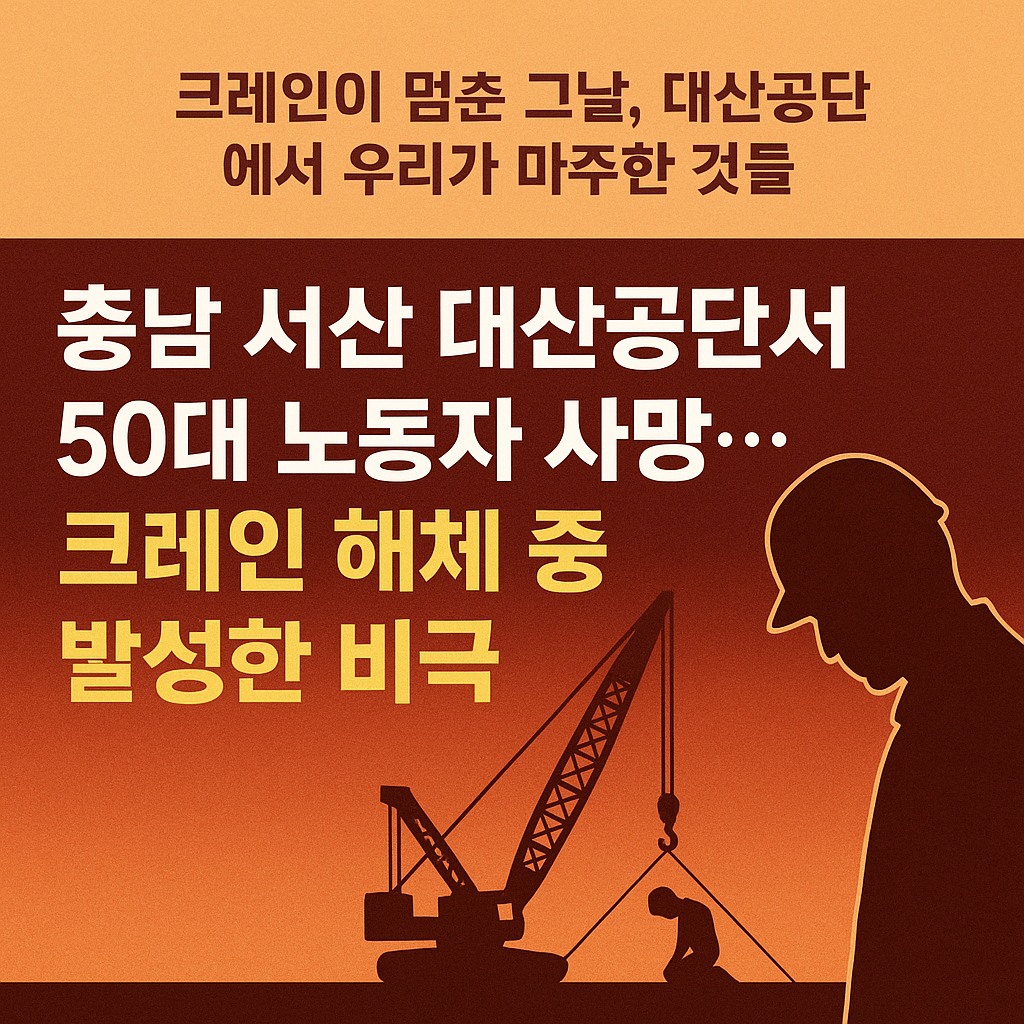 대산공단 하늘 아래, 한 노동자가 집으로 돌아가지 못했습니다. 그의 이름은 알려지지 않았지만, 그의 삶은 결코 가볍지 않았습니다.