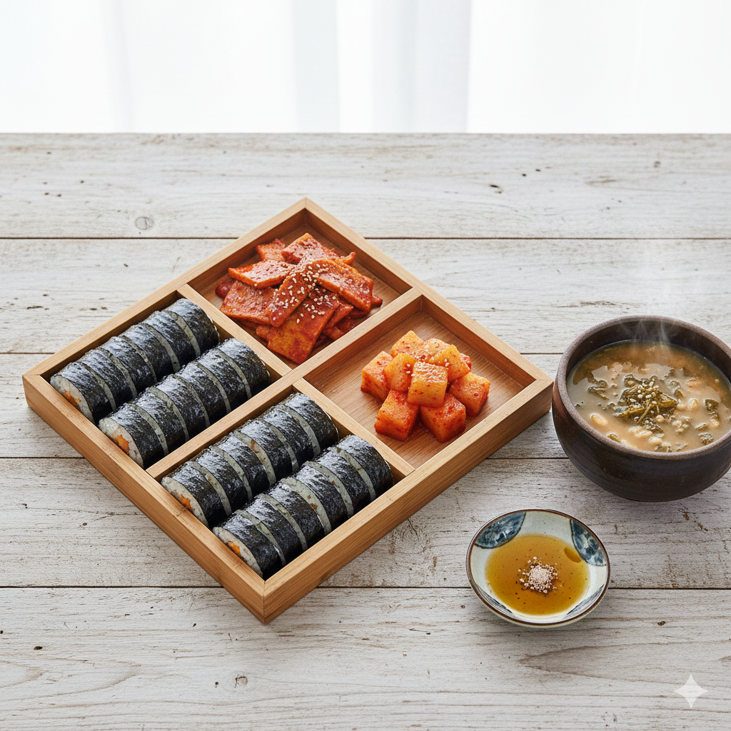 : 간단하게 즐기고 싶다면, 가쓰오부시 육수를 활용한 어묵국도 좋습니다. 깔끔한 국물 맛이 충무김밥의 맛을 더욱 돋보이게 합니다.