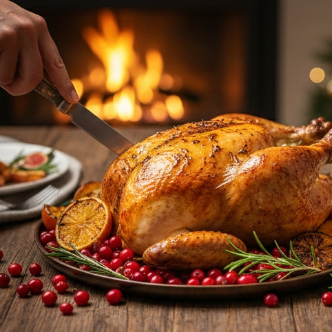 로즈마리, 타임 등 허브를 듬뿍 사용하여 향을 더해보세요. 오븐 온도를 조절하며 겉바속촉을 구현하는 것이 핵심입니다.