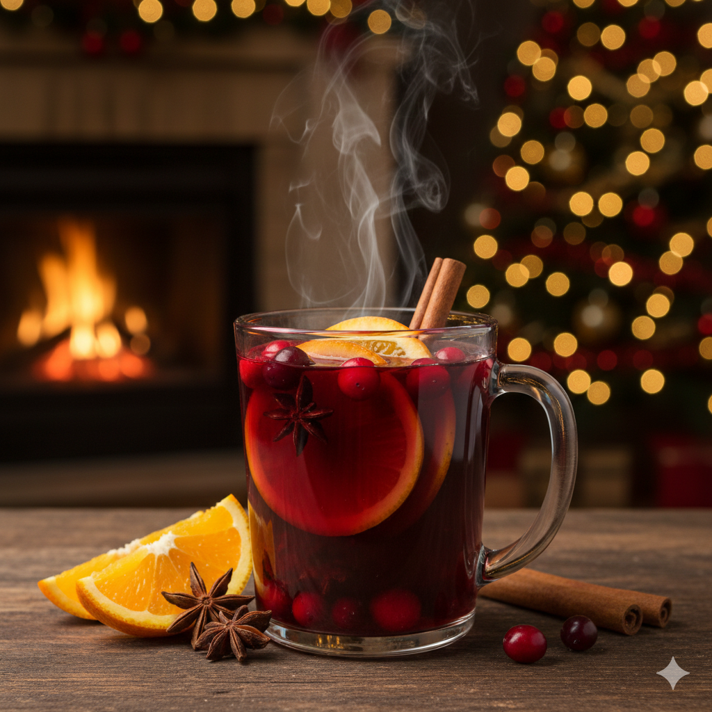 와인에 사과, 오렌지 등 과일과 시나몬 스틱, 정향 등의 향신료를 넣고 끓여 따뜻하게 마시는 뱅쇼는 파티 분위기를 더욱 포근하고 낭만적으로 만듭니다.