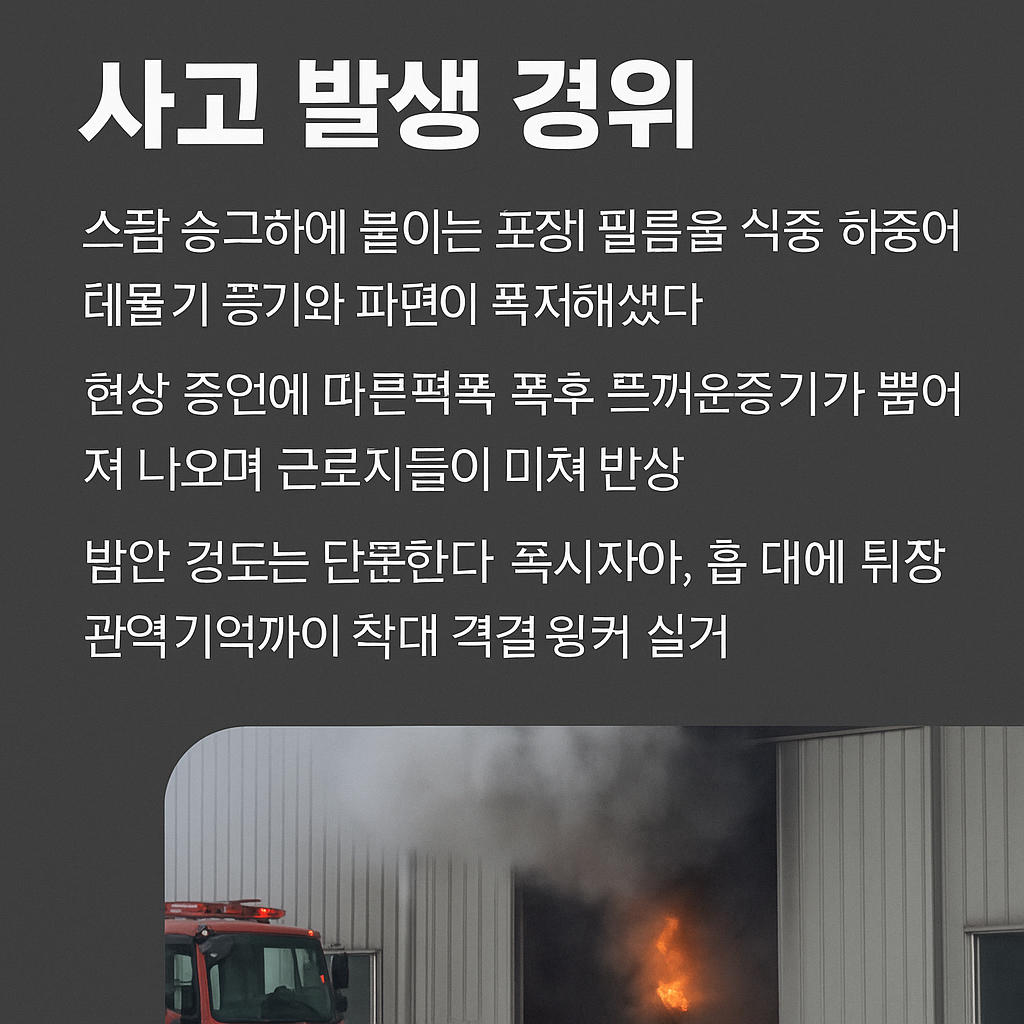 현장 증언에 따르면 폭발 직후 뜨거운 증기가 뿜어져 나오며 근로자들이 미처 피할 겨를도 없이 화상을 입은 것으로 전해졌습니다. 이번 사고는 단순한 화재가 아니라, 압력기기의 폭발이라는 점에서 더 큰 위험성을 내포하고 있습니다.