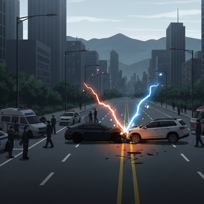 경찰 조사와 목격자 진술을 종합하면, 사고의 직접적인 원인은 포르쉐 차량의 중앙선 침범으로 좁혀집니다. 중앙선은 도로 위에서 생명선과 같습니다.