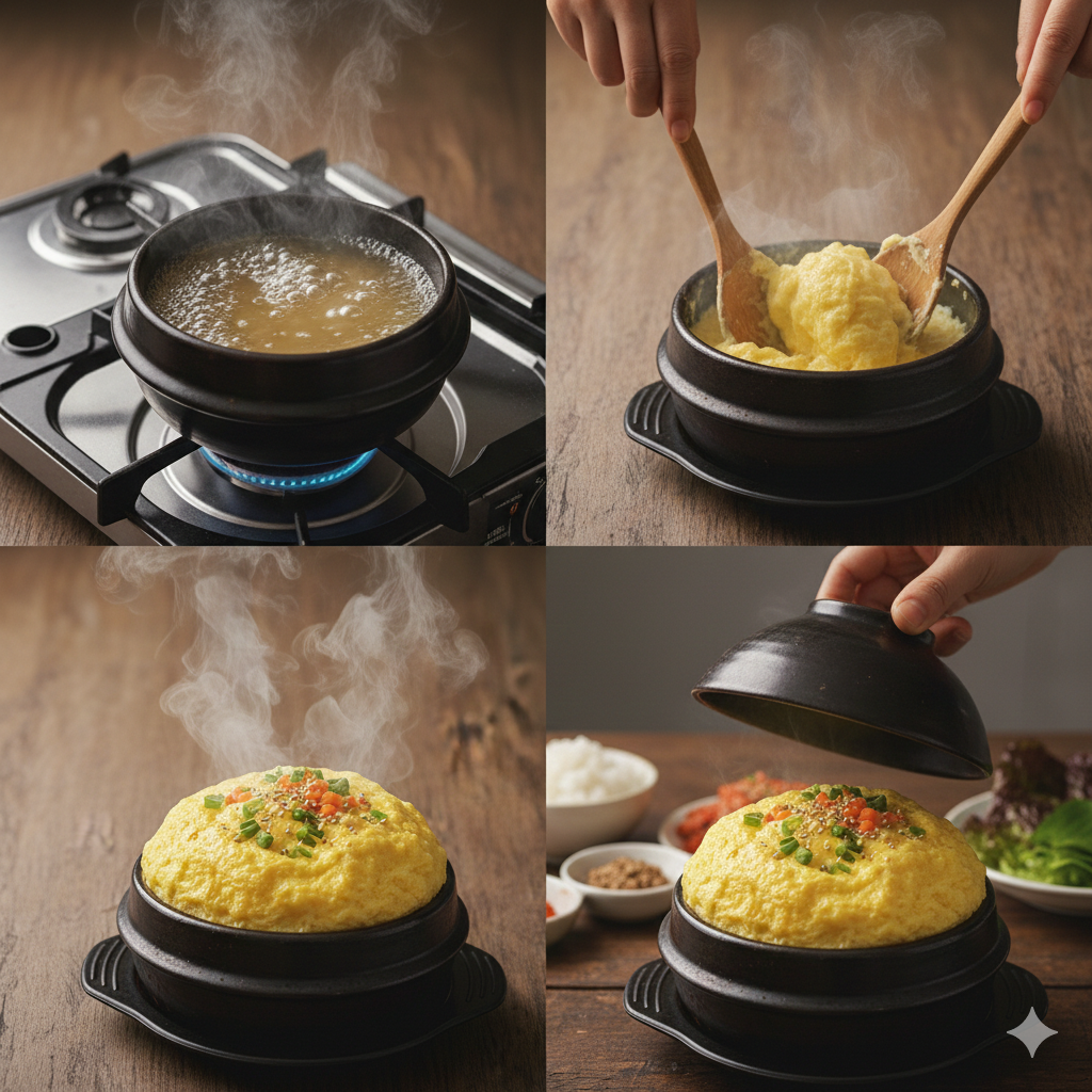 폭탄 계란찜의 핵심은 계란의 농도와 열 조절, 그리고 뚜껑의 타이밍입니다.