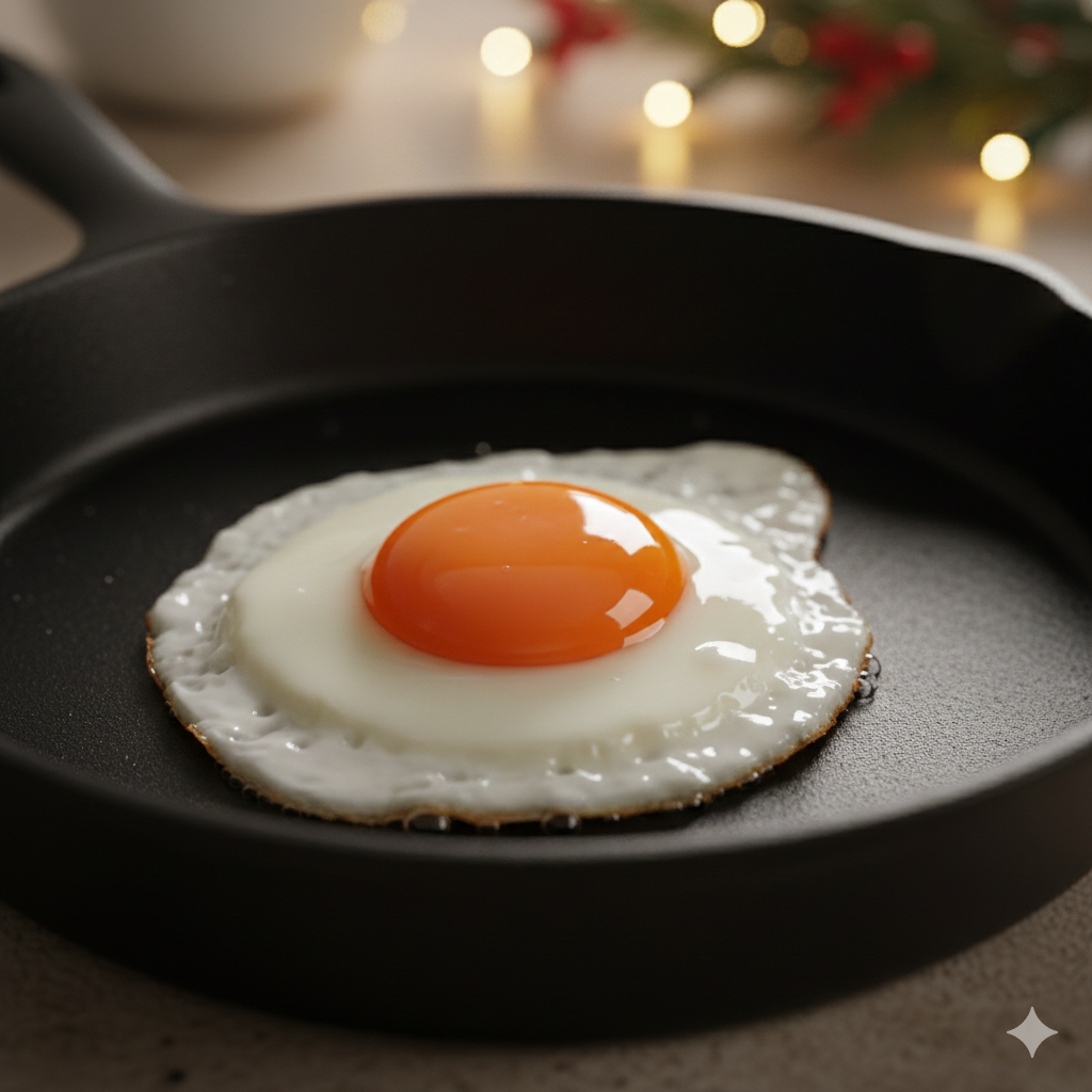 마지막으로 '써니 사이드 업(Sunny Side Up)'으로 구운 계란프라이를 올리면 완벽한 홈스토랑 비주얼이 탄생합니다.