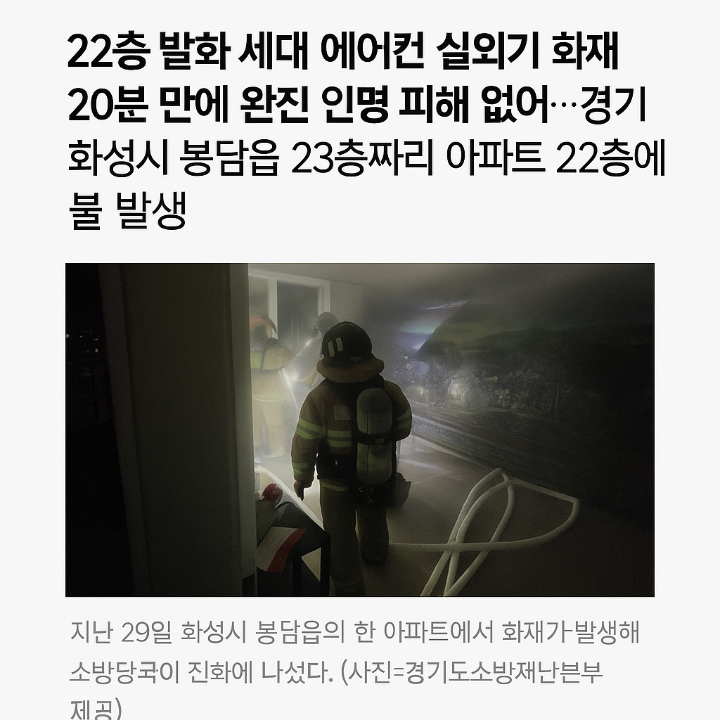 7월 29일 밤 11시 30분경, 경기도 화성 봉담읍의 한 고층 아파트에서 갑작스럽게 화재가 발생했습니다.