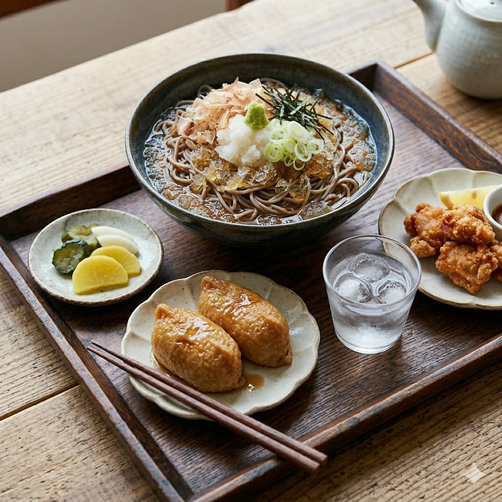 냉모밀은 단백질이나 튀김류와 함께할 때 영양학적으로나 맛으로나 완벽한 밸런스를 이룹니다.