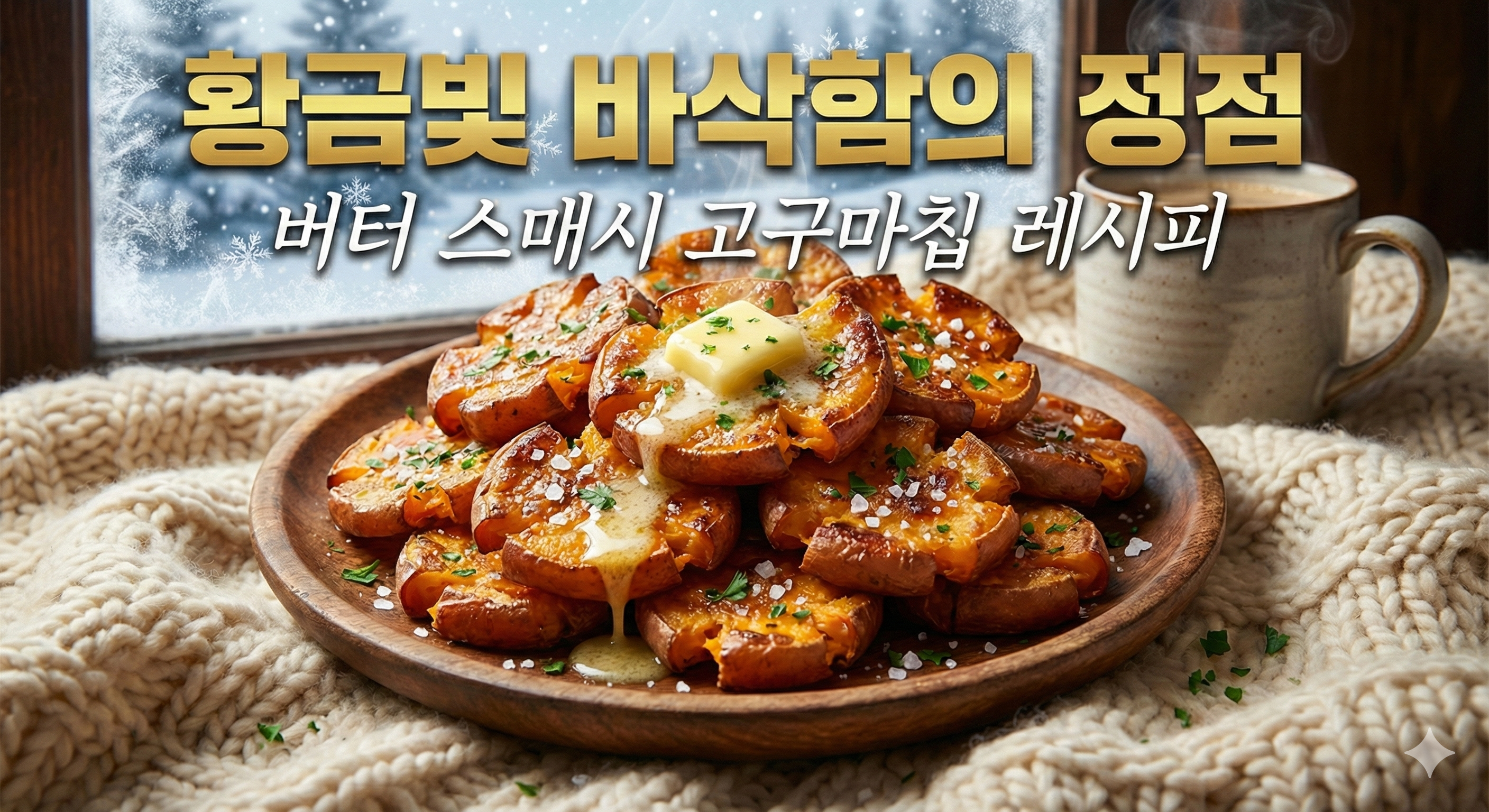 그중에서도 최근 요리 커뮤니티와 SNS에서 반응이 가장 뜨거운 메뉴가 바로 '버터 스매시 고구마칩'입니다.