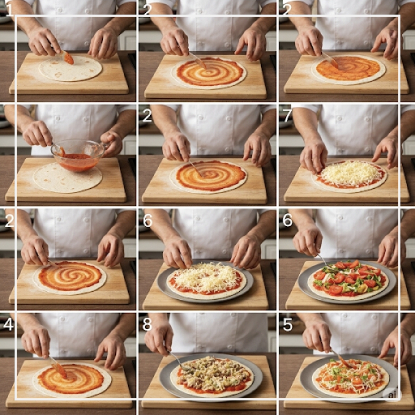 - 피자 소스 대신 토마토 페이스트를 사용한다면, 야채나 소고기를 볶아 함께 올리면 더 풍부한 맛을 낼 수 있어요.