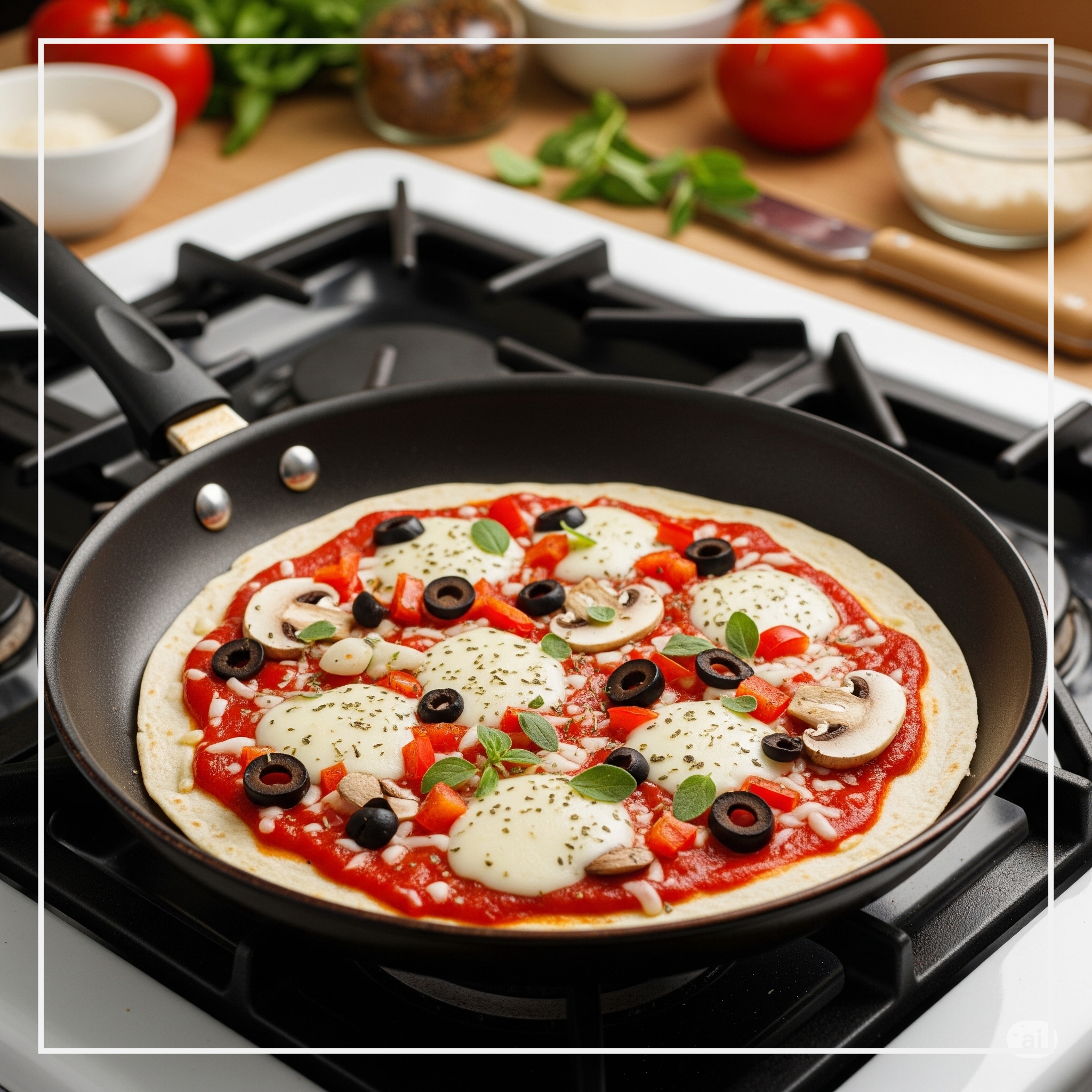- 더욱 쫄깃한 식감을 원하거나 토핑이 많을 경우, 또띠아 한 장 위에 피자치즈를 얇게 깔고 다른 또띠아 한 장을 겹쳐주세요.