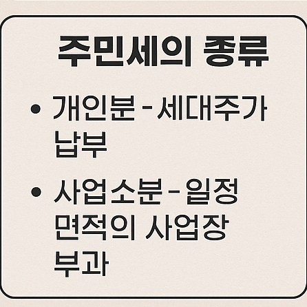 주민세는 납부 대상과 부과 기준에 따라 크게 세 가지로 구분됩니다.