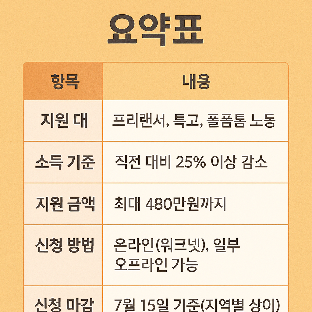 지원 대상: 프리랜서, 특고, 플랫폼 노동자