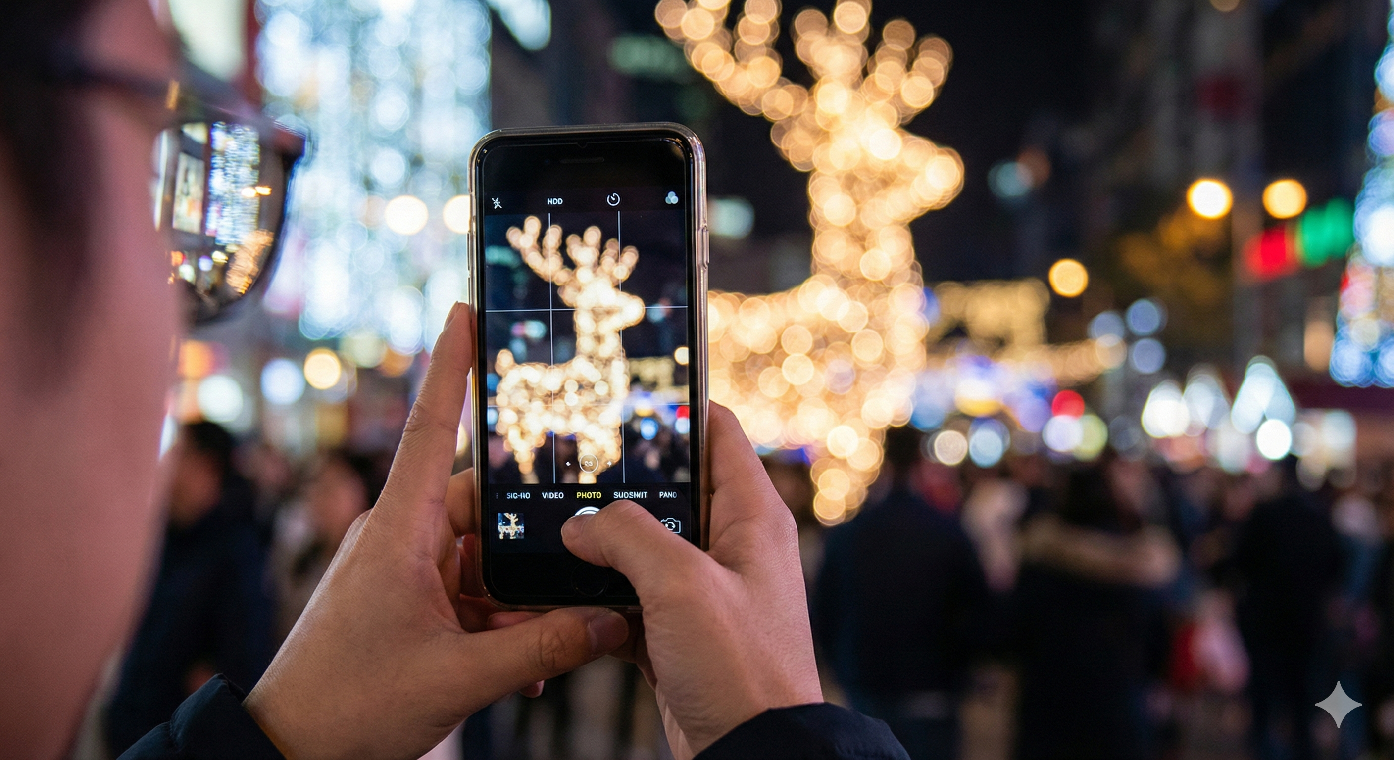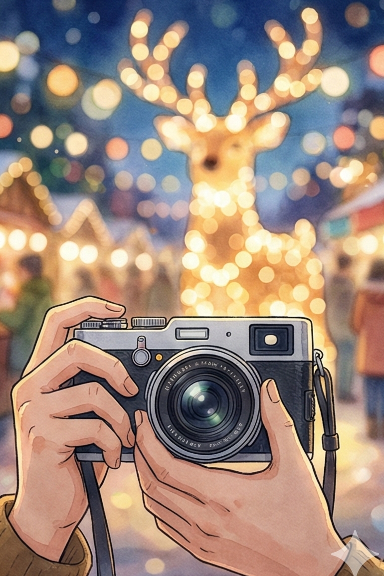배경의 불빛을 흐릿하게 날려버리는 '인물 모드(아웃포커싱)'를 적극 활용하세요. 피사체는 조명 가까이 서되, 카메라 렌즈 앞쪽에 전구 하나를 살짝 걸쳐 찍으면 감성적인 '보케(빛망울)' 효과를 얻을 수 있습니다.