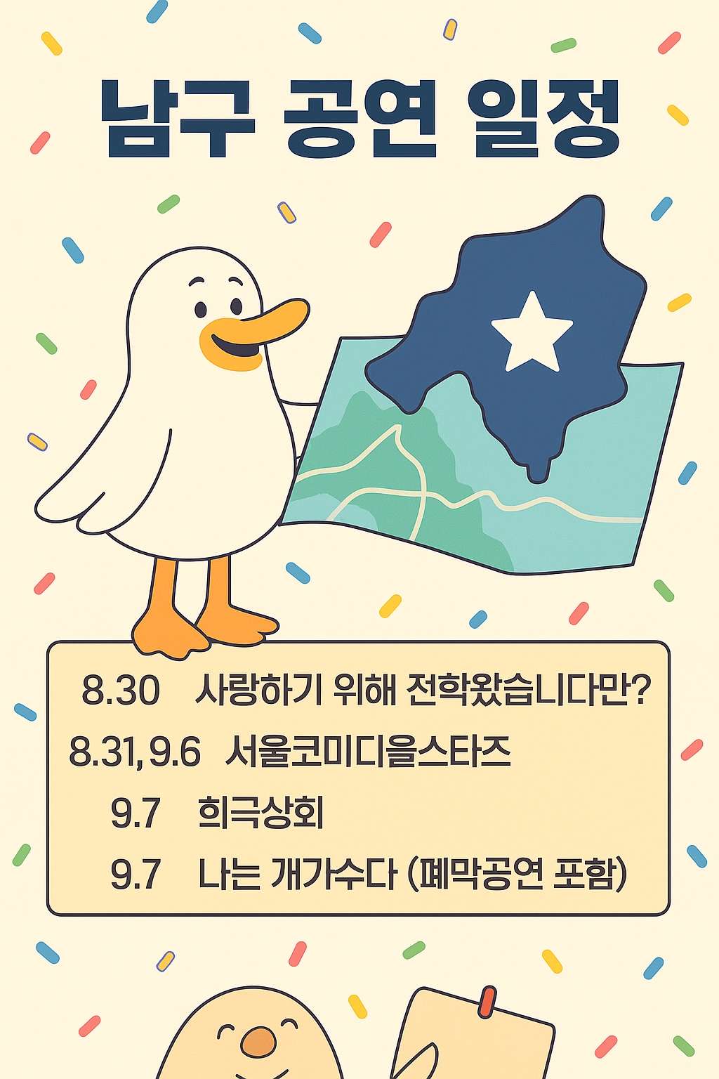- 어딕트씨어터 1관: 코미디 세미나 (9/1), MICF 로드쇼 (9/3~9/5)