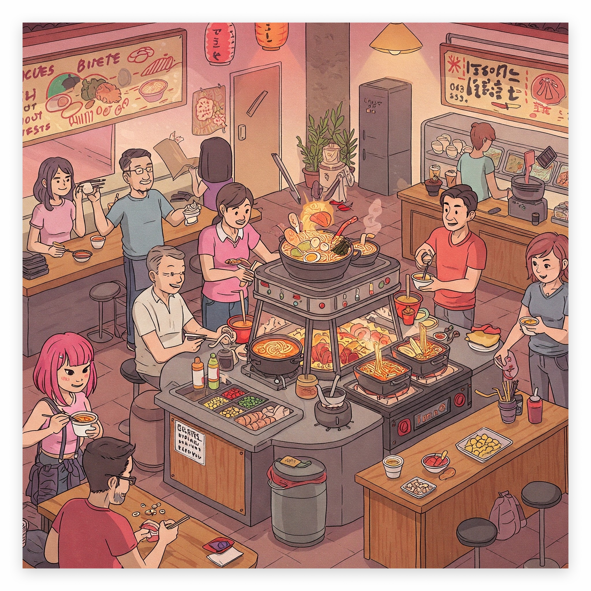 다양한 토핑 바에서는 신선한 채소, 달걀, 어묵, 치즈 등 다양한 토핑을 제공하여 나만의 특별한 라면을 완성할 수 있습니다. 또한, 요리 전문가들이 상주하여 더 맛있게 라면을 끓이는 팁과 비법을 알려드립니다.