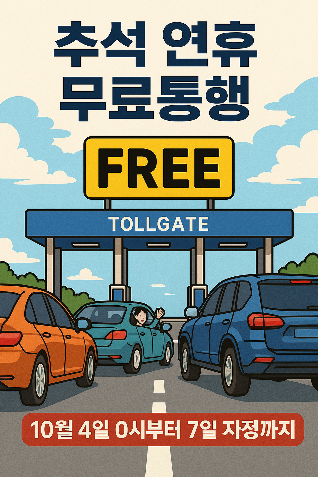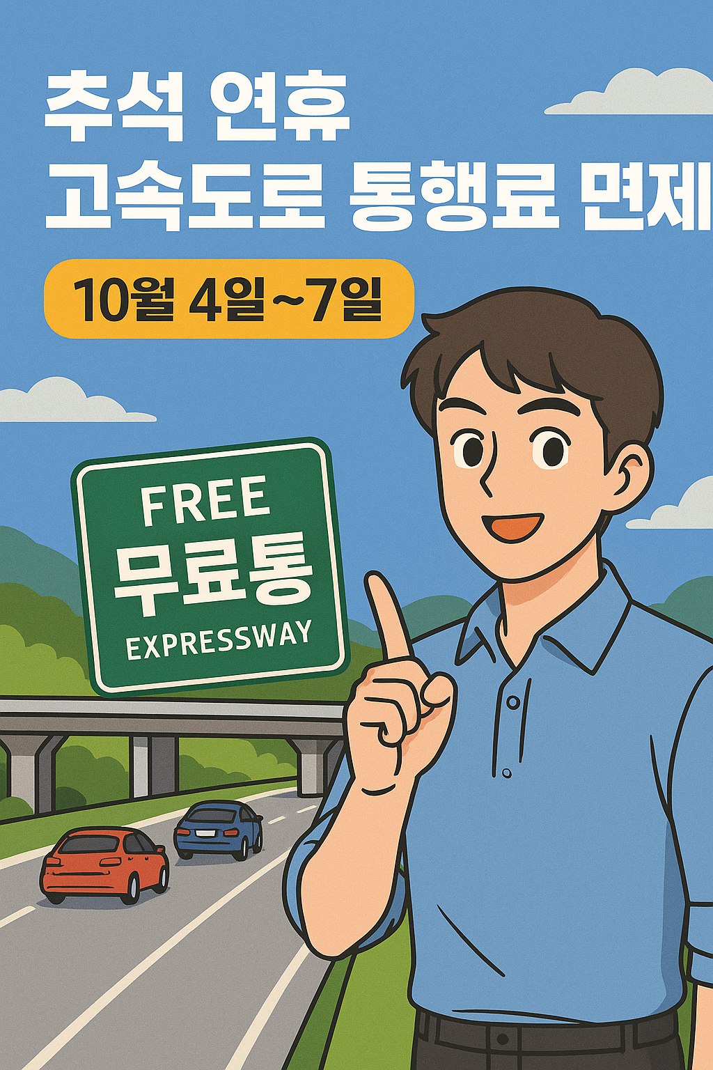 ✅ 2025 추석 연휴 동안 전국 고속도로와 민자도로가 전면 무료통행으로 운영됩니다.