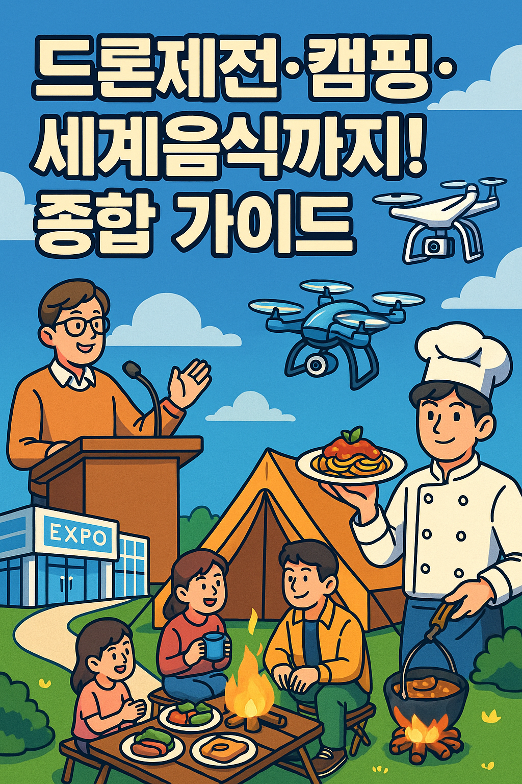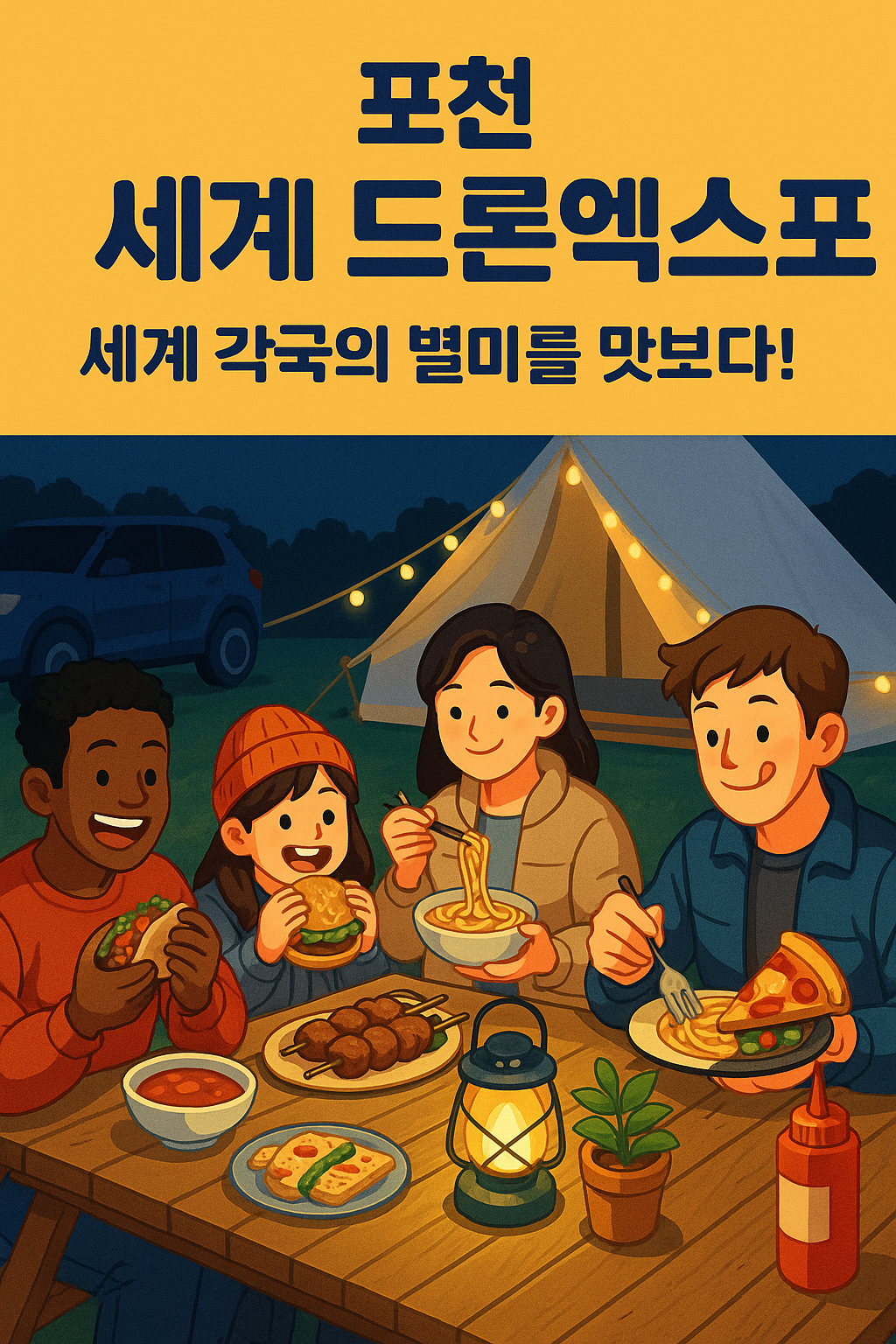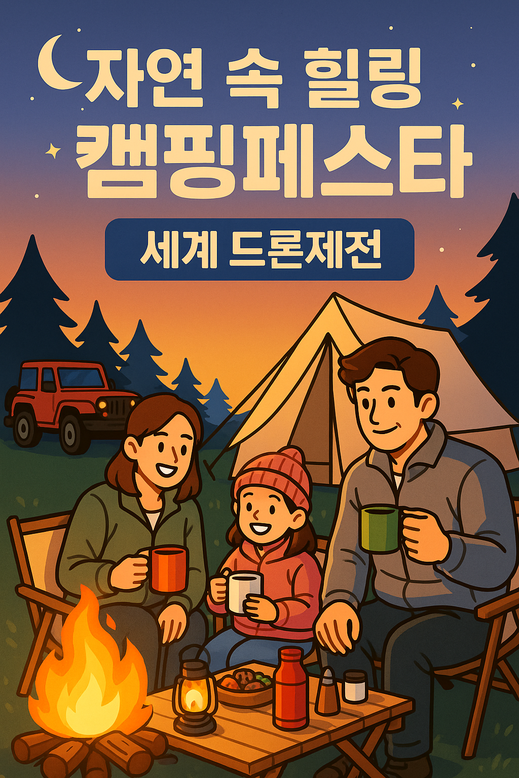 “하늘을 수놓은 6천 대 드론의 예술”과 “가을 하늘 아래 캠핑 감성”을 동시에 느낄 수 있는