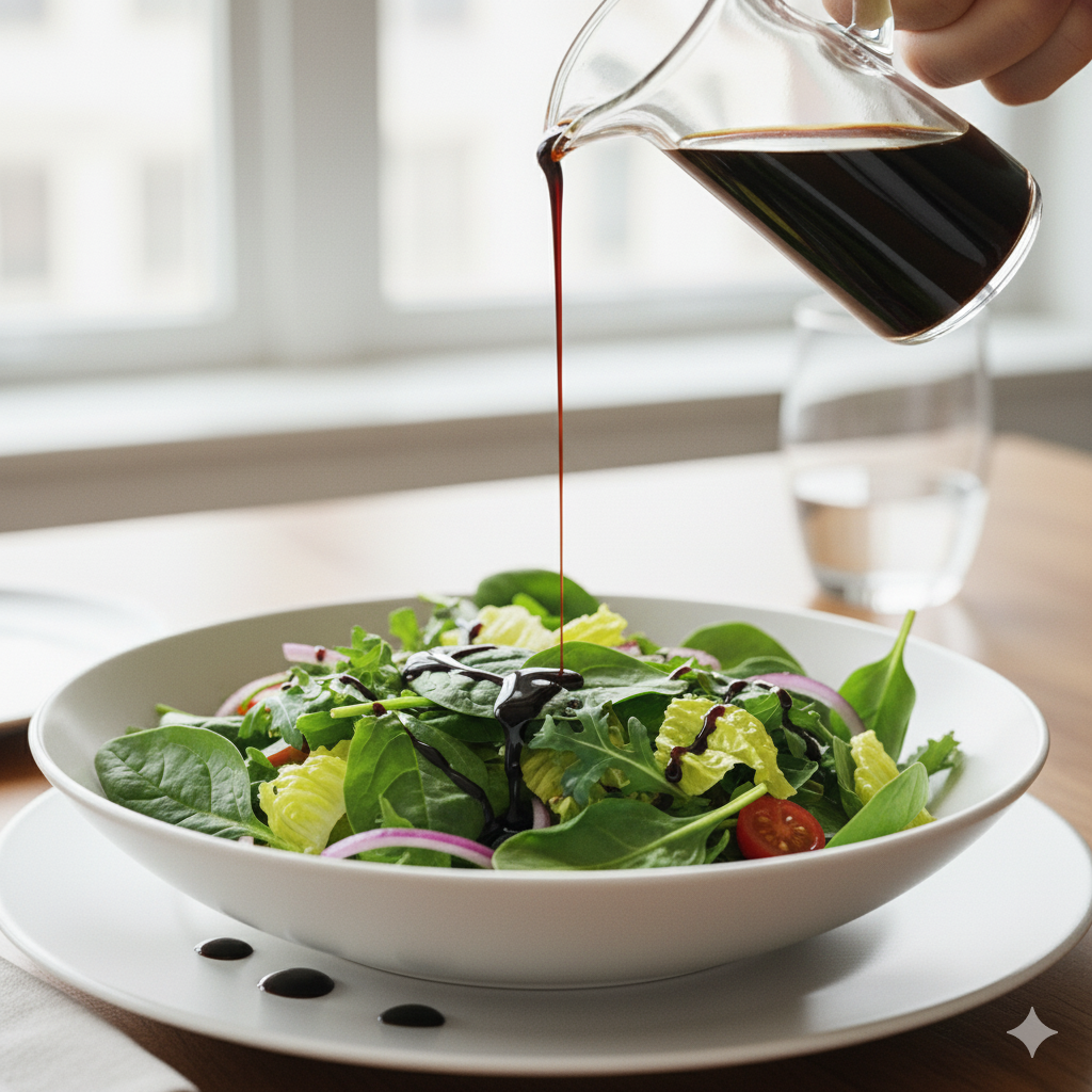샐러드나 다른 음식에 발사믹 소스를 곁들이면 맛의 깊이를 더하고, 건강까지 챙길 수 있는 일석이조의 효과를 누릴 수 있습니다.