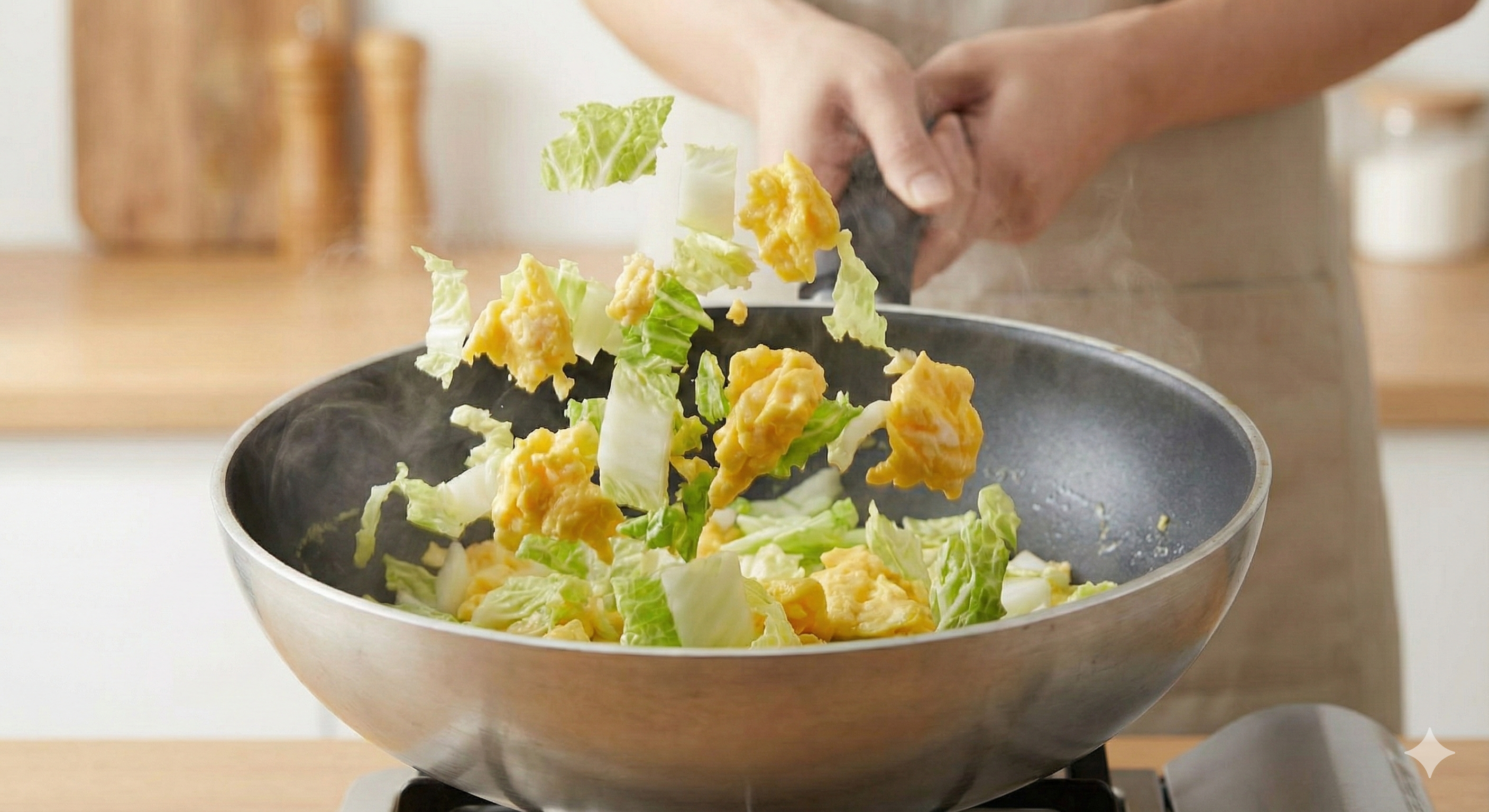 그중에서도 배추달걀볶음은 조리 시간 5분, 재료 3~4가지로 완성되면서도 영양과 포만감을 동시에 챙길 수 있는 현실적인 요리입니다.