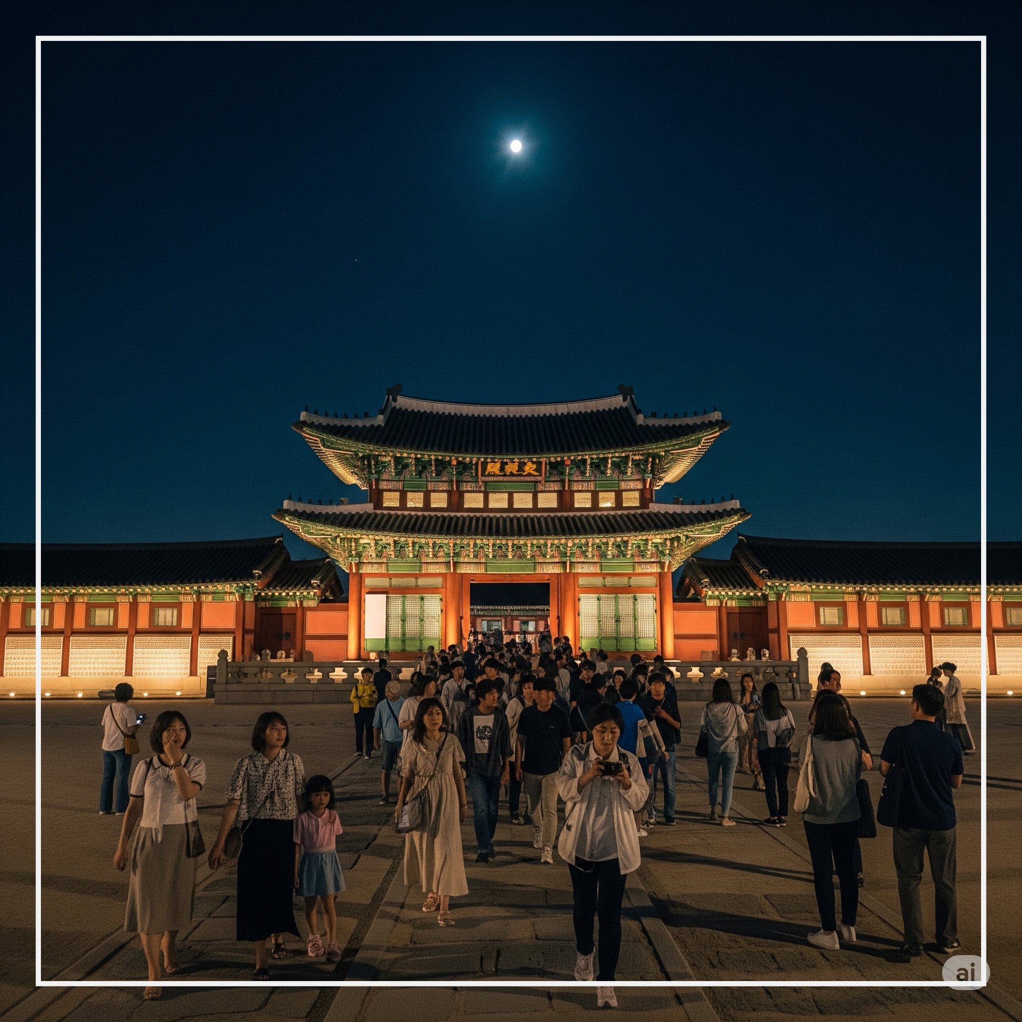 야간 조명 아래 더욱 아름다운 궁궐과 문화유산의 매력을 온 가족이 함께 느껴보세요.